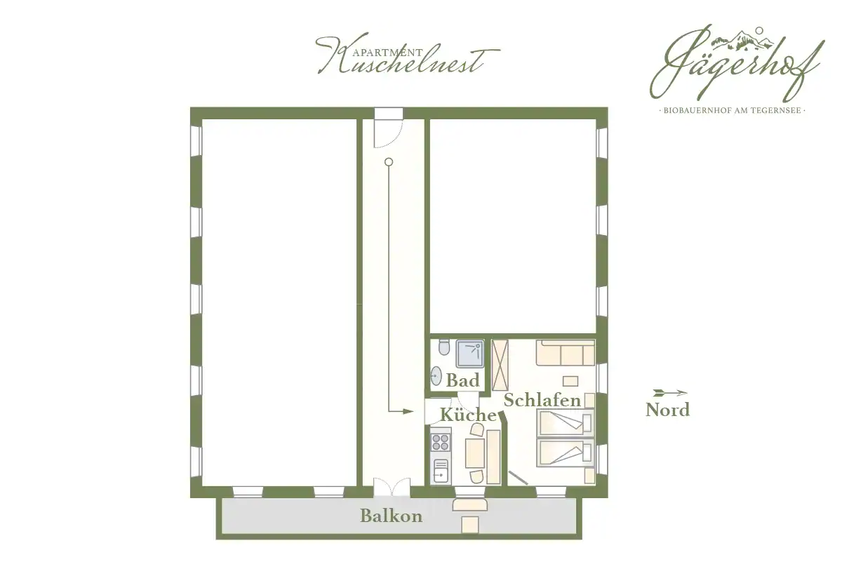 Unser Kuschelnest ist ein neu renoviertes Apartment im 1. Obergeschoss und bietet Platz für 1 - 3 Personen.